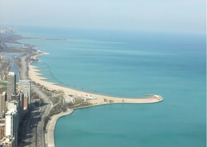 密歇根湖也叫密執(zhí)安湖,是北美五大湖中面積居第三位,唯一全部屬于美國的湖泊。湖北部與休倫湖相通,南北長517公里,最寬處190公里,湖盆面積近12萬平方公里,水域面積57757平方公里,湖面海拔177米,最深處281米,平均水深84米,湖水蓄積量4875立方公里,湖岸線長2100公里。有約100條小河注入其中,北端多島嶼,以比弗島為最大。面積5.8萬平方公里。最深282米,深度由北向南漸減。湖面海拔177米,與休倫湖相當,借麥基納克水道相連。與密西西比河則借伊利諾伊—密歇根運河相通。