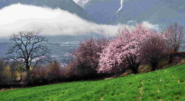 在林芝縣城東南方向約5公里處,有一片天然野生桃林,人們稱它為桃花溝。桃花溝三面環(huán)山,高處有水源,四周林木蔥蘢,版權(quán)所有山東聊城聊之旅國際旅行社有限公司,轉(zhuǎn)載必究!終年碧綠蒼翠,澗有流水,清澈見底;溝內(nèi)野桃鱗次櫛比,林間鳥雀歡噪,既靜僻又幽雅,不失為一處難得的大自然樂園和桃果基地。野生桃林是林芝林區(qū)的一個組成部分。其本身的經(jīng)濟價值并不亞于其它樹種,它不僅是四季綠化的觀賞材料,而且果實、核仁可食用與藥用。