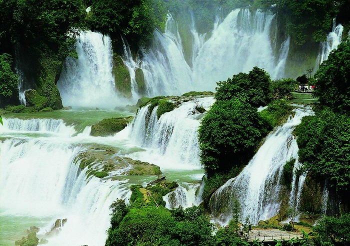 背崩瀑布-冬天水小時,嫵媚秀麗,輕輕下瀉,深沉悠揚;夏天水量增大,那撼天動地的磅礴氣勢,恰似巨龍出山,令人驚心動魄。有時瀑布激起的雪沫煙霧,高達數(shù)百公尺,漫天浮游,竟使周圍一帶經(jīng)常處于霏霏細雨之中,成為別致的"匹練掛遙峰"。