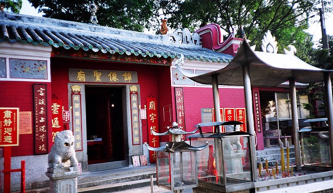 譚公廟位于路環(huán)十月初五街尾,與中國大陸小橫琴島極接近。該廟屬道教廟宇,是路環(huán)香火最盛的廟宇,建于清同冶年間,也為1862 年。廟內(nèi)除供奉譚仙圣外,更加置有一只由鯨骨雕制而成的龍舟,是一件已有百多年歷史的文物。廟內(nèi)的“魚骨舟”為鎮(zhèn)廟之寶,據(jù)說摸過鯨骨會行好運,故善男信女進(jìn)香后必順便摸一摸龍骨。而在廟外一塊刻有《鵝》字的巨形靈龜石,亦為區(qū)內(nèi)一個特色標(biāo)記。
