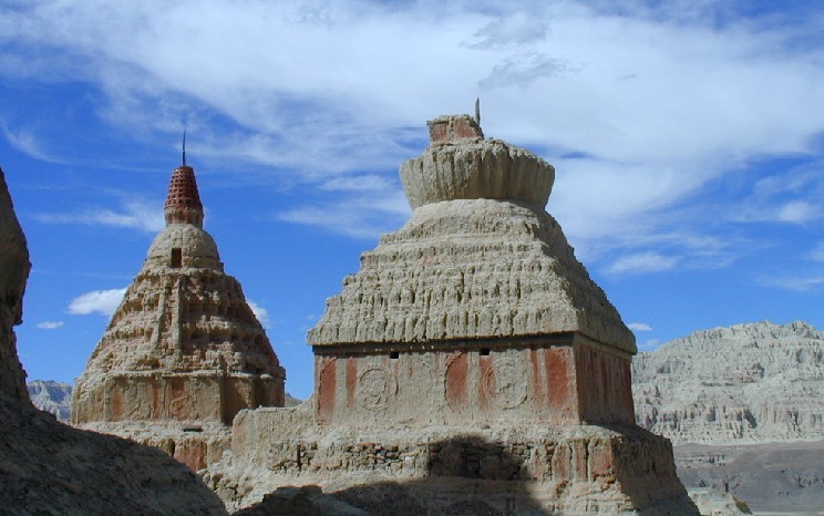 藥王山東側(cè)有個(gè)洞窟式的小廟宇,是一座造型奇特的石窟寺廟,坐落在藥王山東麓陡峭的山腰上,叫查拉魯普。經(jīng)過(guò)一千多年的風(fēng)風(fēng)雨雨,中間幾經(jīng)興衰,這座拉薩地區(qū)罕見(jiàn)的石窟寺廟至今仍然保存完好。石窟呈不規(guī)則長(zhǎng)方形,面積約27平方米,洞口有一中心柱,中心柱與洞壁之間是狹窄的轉(zhuǎn)經(jīng)廊道,巖壁上有69尊石刻造像,66道兩邊排列石刻神像,北面石壁上有松贊干布與文成公主、尺尊公主以及重臣吞米桑布扎、祿東贊的造像。洞內(nèi)光線暗淡,全靠酥油供燈照明。如果去看,千萬(wàn)別忘了要帶頭燈。