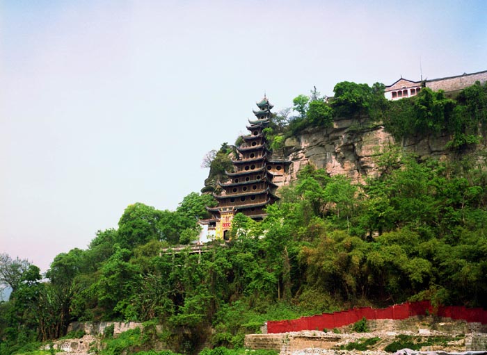 石寶寨是一座拔地而起四壁如削的孤峰 清乾隆初年,借助架于石壁上的鐵索在山頂修建了一座寺廟,嘉慶年間又聘請能工巧匠研究如何取代鐵索上山,于是便依山取勢修建這座九層樓閣 從此,香客及游人可免攀援鐵索之苦,上樓直達(dá)山頂,1956年又加以修建改為12層,如今這里已成為游客眺望長江景色的"小蓬萊"了。