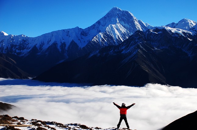 貢嘎山峰的高峻,遠(yuǎn)非內(nèi)地一般名山可比。登臨其上后,放眼望去,萬里銀白的雪域匍匐在山下,遼闊的視野和由山體的高度而產(chǎn)生的登山成就感絕對(duì)值得一攀。由于其海拔非一般山峰可比,因此要求登山者作足充分準(zhǔn)備,以免因勞累和寒冷導(dǎo)致半途而廢。登山者多從西北山脊路線登頂,這也是前人總結(jié)下來的經(jīng)驗(yàn)。