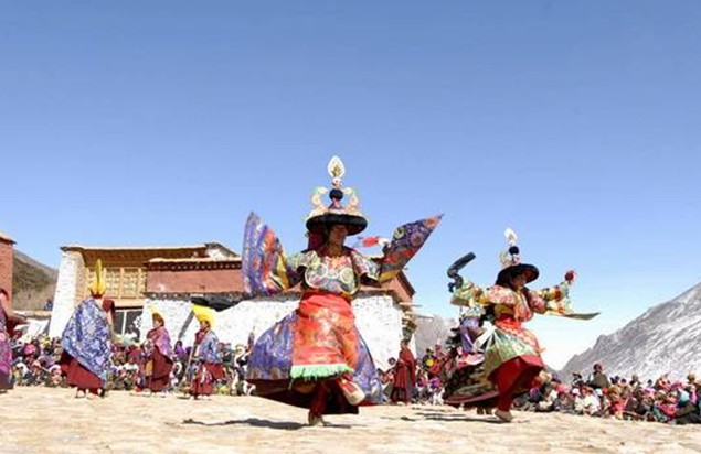 作為藏北重要的旅游勝地,熱振寺還有一些非同一般的“看點”,不可錯過。如每年藏歷4月15日的“迎鳥節(jié)”和7月15日的“帕邦唐廓節(jié)”。“帕邦唐廓節(jié)”最初只是純宗教性的轉(zhuǎn)經(jīng)活動,后來逐漸發(fā)展成為除宗教活動外,農(nóng)牧民進(jìn)行各類商品交換,開展文娛活動的綜合性節(jié)日。“迎鳥節(jié)”是根據(jù)熱振寺當(dāng)?shù)氐臍夂驐l件決定的,每當(dāng)舉行杜鵑鳥供奉日時,僧人達(dá)百余人,敬獻(xiàn)供品若干,并且還要舉行隆重跳神活動,以求賜福。