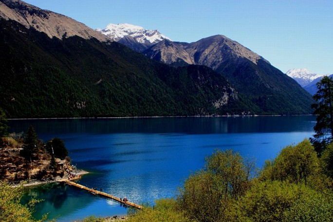 巴松措又名錯高湖,是西藏東部最大的堰塞湖之一,“錯高”在藏語中意為綠色的水,湖面海拔3469米。湖形狀如鑲嵌在高峽深谷中的一輪新月,長約12公里,湖寬幾百至數(shù)千米不等。 最深處66多米??偯娣e為37.5平方公里。湖水清澈見底,四周雪山倒映其中,黃鴨、沙鷗、白鶴等飛禽浮游湖面。巴松措在1994年被評為國家風景名勝區(qū),同時被世界旅游組織列入世界旅游景區(qū)(點),2000年被評為國家AAAA級景區(qū),2001年被國家林業(yè)部授予國家森林公園稱號。