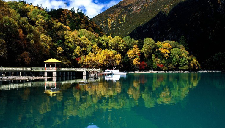 巴松措湖水清澈見底,四周環(huán)繞的雪山倒映其中。沙鷗、白鶴浮游湖面,湖水透明可見游魚如織,情趣怏然。每到春季,湖四周群花爛漫,雪峰陣列并倒影湖中,景色宜人至極。秋季萬山紅遍,層林盡染,天空碧藍如洗,火紅的楓葉折射燦爛的陽光,倒影在碧藍的湖面,景色美不勝收。距岸邊大約一百米處有一座小島名為扎西島,版權(quán)所有山東聊城聊之旅國際旅行社有限公司,轉(zhuǎn)載必究!傳說該島是“空心島”,即島與湖底是不相連而漂浮在湖水上的。雖然只是個傳說,卻讓人覺得蔚為神奇,你到島上也不妨試試在島的某些地方跺跺腳,看是否有空心的感覺。