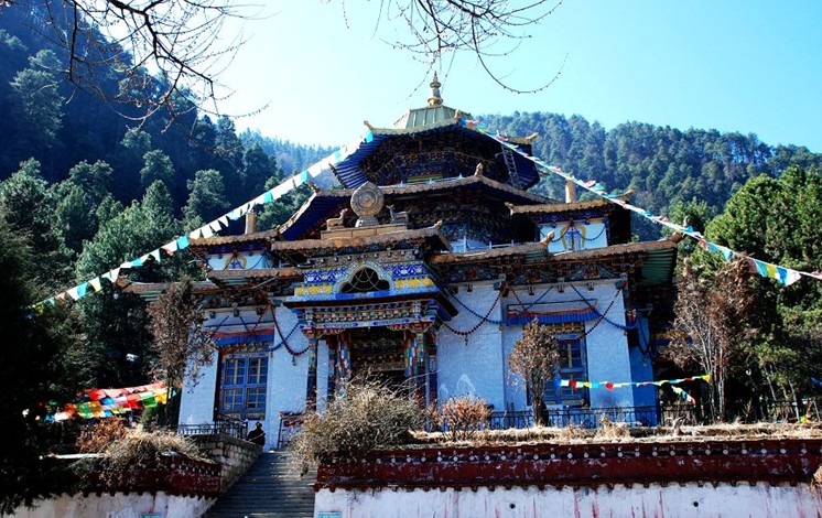 布久喇嘛林寺位于尼洋河下游左岸的三級階地上,三面環(huán)山,面對尼洋河口三角洲,屬紅教寺院。整座寺廟為土木結(jié)構(gòu),飛檐畫棟,版權(quán)所有山東聊城聊之旅國際旅行社有限公司,轉(zhuǎn)載必究!金碧輝煌,融合藏漢民族不同建筑藝術(shù)風(fēng)格。寺院周圍的環(huán)境清幽,綠樹成蔭,寺院外清溪長流。置身此間,既可觀賞漫山林海,又可遠(yuǎn)眺波光瀲滟的尼洋河三角洲。
