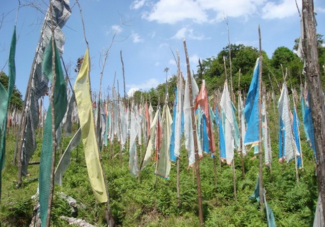 位于墨脫村南則瑪拉山上。是墨脫最大的寺院。建寺時間是在門巴東遷后不久,距今約8代人。據(jù)傳是由甘布寺中的活佛甘布建筑的,最初是一座有12面墻和東西南北四門的石木結(jié)構(gòu)三層建筑,內(nèi)有鍍金銅佛像多座。1950年毀于地震,后重修為東西兩門建筑。仁欽崩寺的建寺時間是在門巴東遷后不久,距今約8代人。這一建筑物很有特色,值得一看,寺院內(nèi)外景色優(yōu)美,古木鮮花將這里裝扮的古樸而典雅,讓人沉浸在這古老的文化和美麗的景色之中。