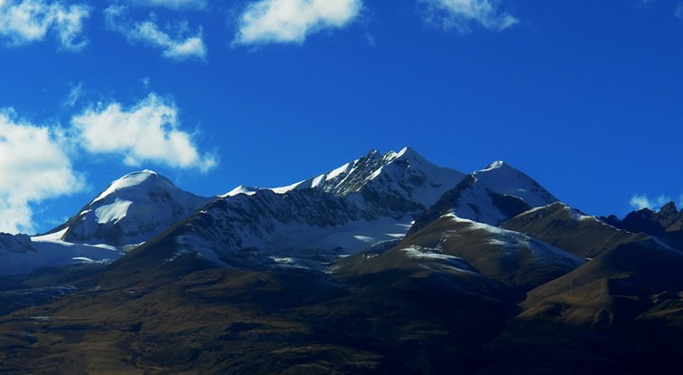 隨著季節(jié)的變換,桑丹康桑雪山山峰也呈現(xiàn)不同的色彩:夏日呈乳色,冬季呈銀色,春天秋天白而亮。山腳下的跋絨谷中的跋絨寺,是藏傳佛教噶舉四大派之一的跋絨噶舉主寺,每年都有不少信徒前來朝拜進香。青藏公路從此山前面通過,因而人們不難睹其尊容。