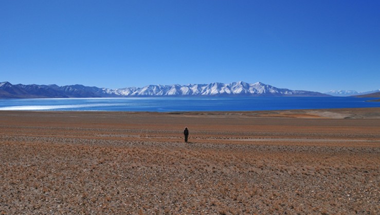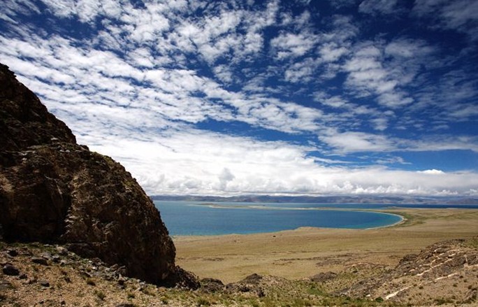 當惹雍措是藏北著名神湖,它位于那曲地區(qū)的一個深陷的湖盆底部,它與當惹雍措相毗鄰。當惹雍措湖面形似一金剛杵,上圓中細下部長,四面群山環(huán)抱,南面的達爾果山山頂積雪終年不化。實際上當窮措與當惹雍措是在同一個湖盆之內(nèi),湖水未枯以前本是同一湖泊。這正是當窮措名字的來歷,藏語里當窮措即小的當惹雍措之意。據(jù)說此湖在一天之中能變換三種顏色。湖東岸是連綿不斷、屏風(fēng)般矗立的褚紅色山壁,它們清晰地記錄了當惹雍措湖水一次次下降的歷史。被湖水沖刷而成的階梯從湖畔山頂一圈又一圈地一直環(huán)繞到湖濱。