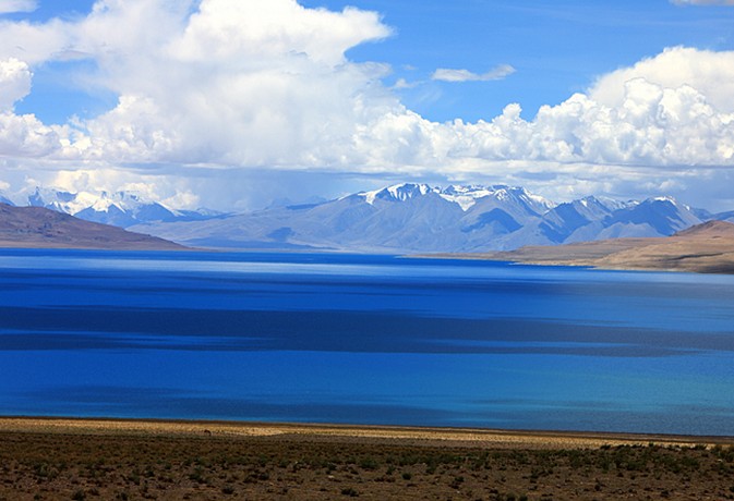 當惹雍措是藏北著名神湖,它位于那曲地區(qū)的一個深陷的湖盆底部,它與當惹雍措相毗鄰。當惹雍措湖面形似一金剛杵,上圓中細下部長,四面群山環(huán)抱,南面的達爾果山山頂積雪終年不化。實際上當窮措與當惹雍措是在同一個湖盆之內(nèi),湖水未枯以前本是同一湖泊。這正是當窮措名字的來歷,藏語里當窮措即小的當惹雍措之意。