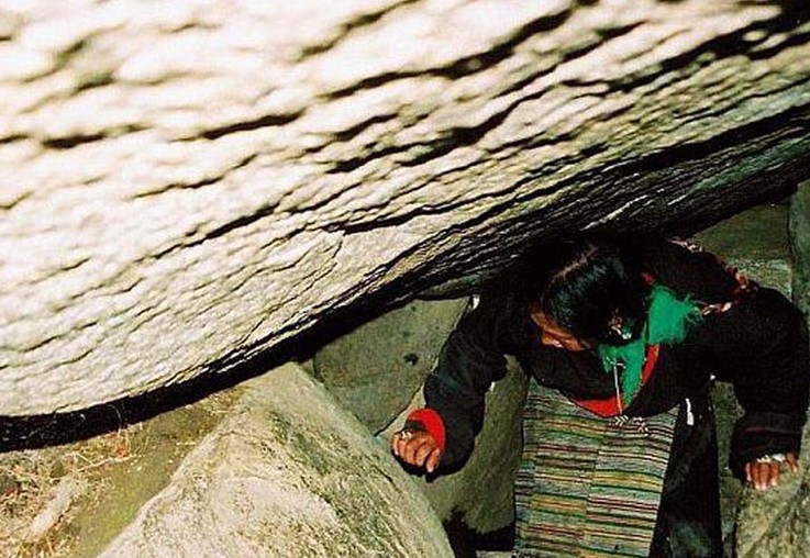 在聶瑪隆一條陡峭的山坡上,有座蓮花生大師當(dāng)年的修行洞。