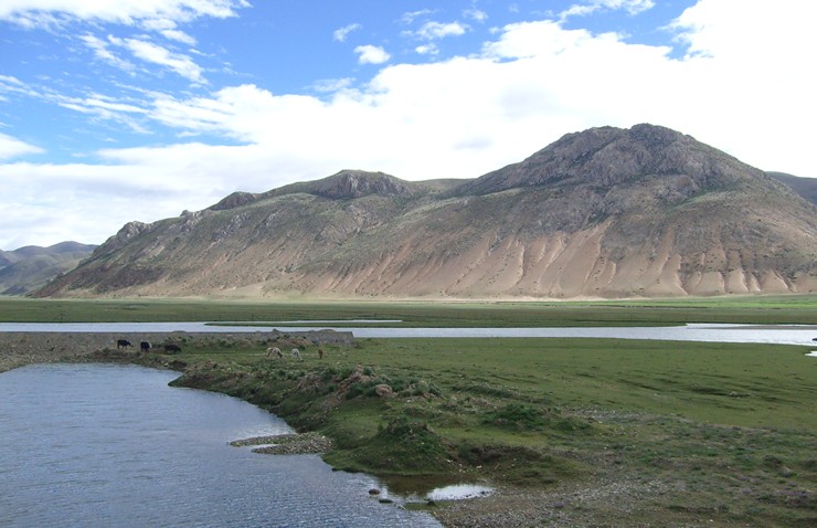 邦達草原位處昌都地區(qū)三江流域之高山深谷中的邦達草原是一塊地勢寬緩、水草豐美的高寒草原。怒江支流玉曲上游蜿蜒流淌其中,兩岸廣闊的低濕灘地上生長著茂密低矮的大蒿草、苔草之類的草甸植物,綠茵如氈,除成群牛羊在那里游蕩覓食外,偶爾也會有一些藏原羚出沒于其間。