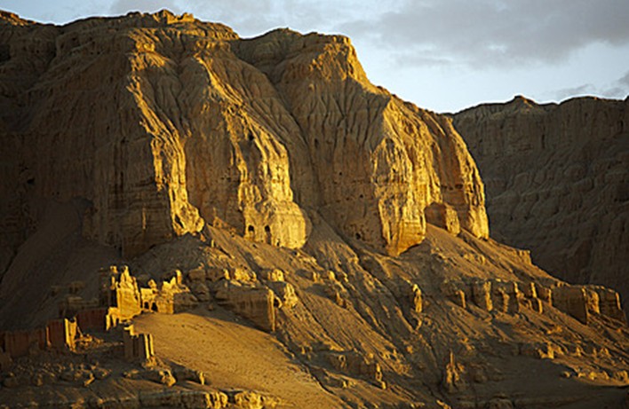 象雄與古格,兩個(gè)一度各領(lǐng)風(fēng)流的西部古國(guó),從此消逝在歷史的煙云之中,令考古學(xué)家、歷史學(xué)家、民族學(xué)家們?cè)诤坪驳氖泛V锌嗫嗨褜?,力圖用科學(xué)的證據(jù)來(lái)復(fù)原其歷史的舊貌。關(guān)于古格王國(guó),雖然各國(guó)的歷史學(xué)家與考古學(xué)家曾作過(guò)大量的調(diào)查研究工作,但也有許多問(wèn)題時(shí)至今日仍然藏在云山霧海之中未能得解。其中,一個(gè)最令考古學(xué)家感興趣的問(wèn)題在于:當(dāng)年這個(gè)王國(guó)最強(qiáng)盛時(shí),一度號(hào)稱達(dá)到十萬(wàn)之眾,但古格王國(guó)都城遺址扎不讓所有能住人的洞窟加起來(lái),也只能容納兩千人左右,這不能不讓學(xué)者們推測(cè),在這片神秘的土地上,一定還有無(wú)數(shù)個(gè)像扎不讓這樣的古城堡隱藏在大漠荒原深處,被歷史的風(fēng)塵所掩蓋。