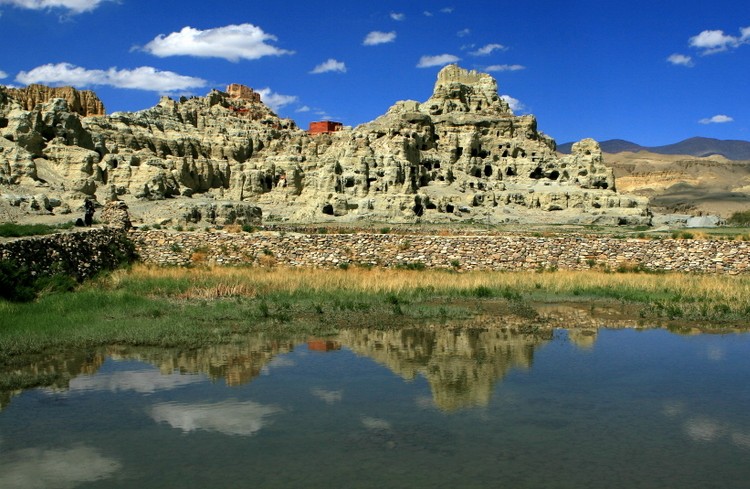東嘎是扎達(dá)縣的一個(gè)靠山臨水,只有十幾戶人家的小村莊,在“古格王國(guó)”遺址西北約40千米。東嘎石窟散布在東嘎村北面斷崖上,路上能看到山上密密麻麻的洞窟?,F(xiàn)存洞穴接近200個(gè),延綿2千米,儼如蜂巢。其中繪有精美壁畫(huà)的幾個(gè)窟洞,集中在東面一片呈“U”字形的山崖上。