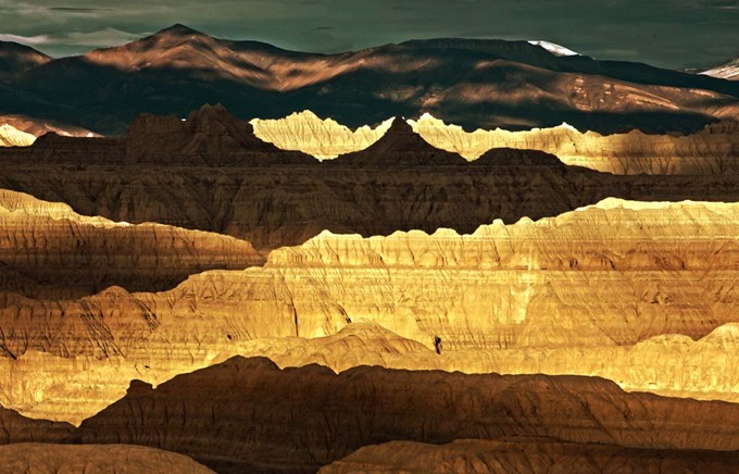 遠(yuǎn)遠(yuǎn)望去,滿眼的金碧輝煌;在高原迷幻光影的襯托下,宛若神話世界。近前觀瞧,便會看到象泉河兩岸土林環(huán)繞,道不盡天工巧奪。那舉世所無的奇觀,像莊嚴(yán)宏偉的廟宇,像壁壘森嚴(yán)的碉樓,像恢弘高聳的佛塔,像極盡豪華的古代宮殿,像古樸威嚴(yán)的歐式城堡,也有的或如萬馬奔騰、昂首嘯天,或如教徒修行、虔誠靜坐,天工萬象,無可盡數(shù)。