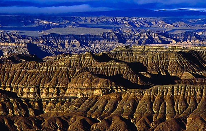 立于盆地之中,旅者可以深深體會到大自然的偉力,更為它的造化所震撼。這扎達(dá)盆地里獨(dú)特的自然地貌、這地球上規(guī)模最大的一片土林;峽谷與土林層層疊疊,綿延不絕。這是一種獨(dú)特的“水平巖層地貌”,是高平的山頂被縱向切割侵蝕成的一條條深深的溝壑,變成了土的林海,但人們更愿意相信,這是一種藝術(shù),一種大地的藝術(shù),就好像是大自然特意造出來、專門是為了向人類展示其魅力似的。這就不難理解為什么那么多的各學(xué)科的科學(xué)工作者——包括人文工作者——都迷戀著扎達(dá)的土林。