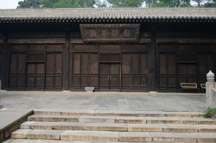 遼代古碑:在大悲堂的西北側(cè)有一遼代古碑,刻有天王寺志延撰寫的《陽臺(tái)山清水院創(chuàng)造藏經(jīng)記》。據(jù)碑上文字記載是奉遼朝道宗皇帝及蕭太后之旨意于戊申年(1068年)三月所立。
