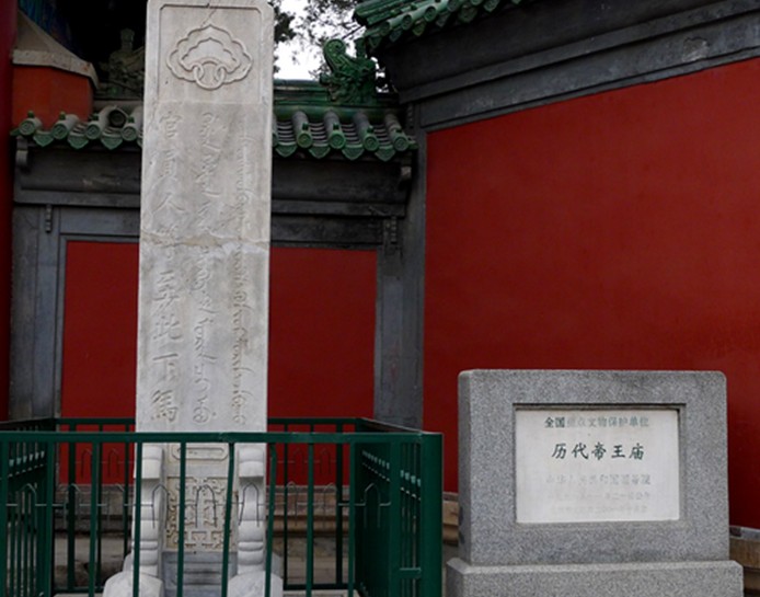 廟的東南部建有神廚、神庫(kù)、宰牲亭、井亭等一批建筑,另有鐘樓一座。廟門莊嚴(yán)氣派,門前兩座下馬碑和巨大的紅影壁。下馬碑上有漢、蒙、滿等文字刻有“官員人等在此下馬”,顯示著歷代帝王廟的威嚴(yán)和尊貴。