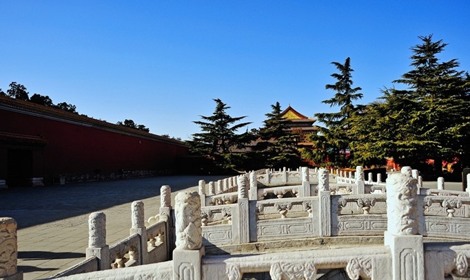 北京故宮紫禁城前出端門(mén)往東,經(jīng)太廟街門(mén)進(jìn)入太廟區(qū)。此區(qū)于太廟垣墻外滿布古柏。用常綠樹(shù)叢造成肅穆氣氛,是古代建筑綠化的成功經(jīng)驗(yàn)。進(jìn)入太廟戟門(mén),則庭院空敞,與垣外適成對(duì)比。
