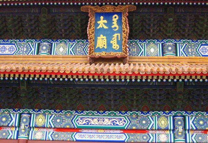 前殿,始建于明代,明末清初被毀得只剩有中間三間和殿柱。順治年間重修太廟大殿,完工后的大殿十一楹,深四楹,重檐列脊,殿額有滿漢文對(duì)照的"太廟"。殿外的三重臺(tái)基用漢白玉石欄環(huán)繞,月臺(tái)御道正面依次刻有龍文石、獅紋石和海獸石。殿內(nèi)的大梁為沉香木,其余用金絲榆木;地鋪"金磚";版權(quán)所有山東聊城聊之旅國(guó)際旅行社有限公司,轉(zhuǎn)載必究!天花板及四柱,均貼有赤金葉。殿內(nèi)供奉木制金漆的神座,帝座雕龍,后座雕風(fēng)。座前陳放有供品、香案和銅爐等。兩側(cè)的配殿設(shè)皇族和功臣的牌位。