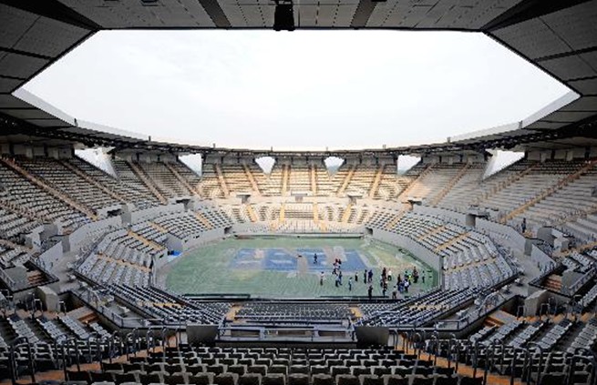 中心賽場是網球中心里最大的一朵“花”,48根傾角達到42度的現(xiàn)澆鋼筋混凝土懸挑斜梁,斜長約17米,每根自重達到62噸。版權所有山東聊城聊之旅國際旅行社有限公司,轉載必究!正是這48根巨大的懸挑斜梁撐起了12瓣花瓣,奧運會網球決賽時,將有10000名觀眾坐在這蓮花之中觀看巔峰對決。