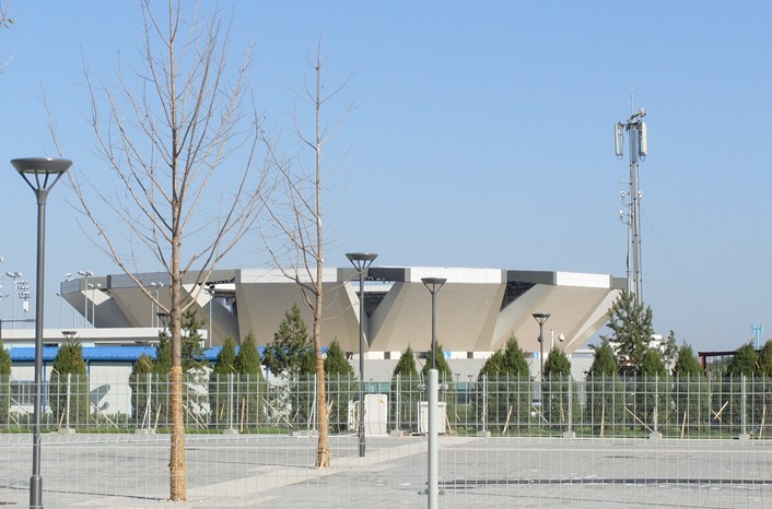 網球中心建設負責人孫彥朝說,網球中心設計時保留了“清水混凝土”的本色,不加任何裝飾,很好地與森林公園的綠色映襯起來,效果非常漂亮。中心賽場是網球中心里最大的一朵“花”,48根傾角達到42度的現(xiàn)澆鋼筋混凝土懸挑斜梁,斜長約17米,每根自重達到62噸。