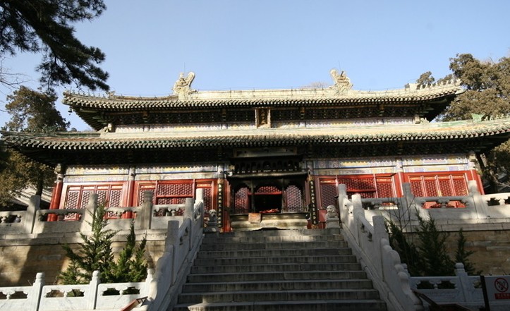 寺院東路由庭院式建筑組成,有方丈院、延清閣和清代皇帝的行宮院,主要建筑有萬壽宮、太后宮等。院中幽靜雅致、碧瓦朱欄、流泉淙淙、修竹叢生,頗有些江南園林的意境。院內(nèi)有流杯亭一座,名猗軒亭。