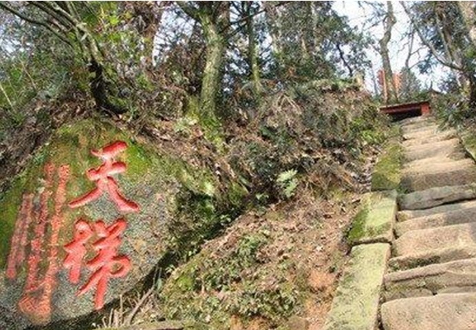 天梯山雖算不上巍峨雄偉,但登臨其上,越見(jiàn)其奇、秀、險(xiǎn)、俊,尤其在這毫無(wú)綠色掩映到處是一片蒼黃的秋冬之際。但見(jiàn)一條石階攀沿而上,陡且窄,直達(dá)山頂,不見(jiàn)盡頭。倒像是自天上垂掛而下,謂之天梯,果真名不虛傳。