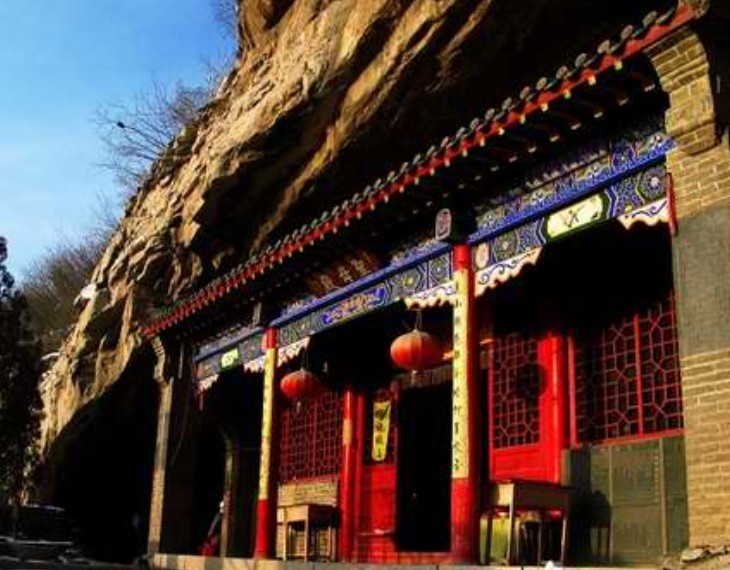 抱犢寨的洞穴也是奇觀之一。除上述的十八池外,天門洞、仙人洞、天井、蛟龍洞、白云洞、藏經(jīng)洞等等洞穴,都各具特色,其中尤以天門洞和天井最具代表性。天門洞位于寨頂東北隅,又稱東天門,是一處天然形成的奇異景觀。其洞口開在峭壁之上,如一宏大的城門洞,雄偉壯觀;最奇的是洞頂部敞開一同樣巨大的“天窗”,并有臺階可以上到寨頂。整個洞穴宛如古時農(nóng)家的灶臺,因而民間又稱之為“鍋閌閬子”。由山下向洞中仰望,好似《水滸傳》中描繪的“天眼開”景象,神奇而神秘。天井位于寨頂西南隅,是一口徑約20米的巨大豎井,深有30多米,井中生有大樹,井壁長有灌木,幽深莫測。洞底有一窟窿穿出山崖之外,因而又稱“無底洞”。