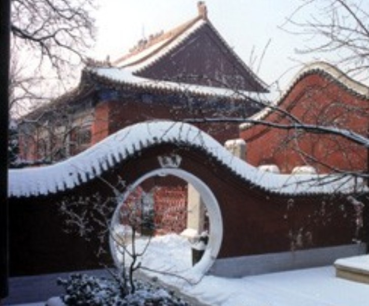 它的壁面全部用漢白玉裝飾,彩繪為河西畫法。內(nèi)外繪色古香,莊重雅致。門頂?shù)慕鹕鹆撸柟獾恼找拢@得富麗堂煌。38墩斗拱承托著金頂,交錯重疊,每墩斗拱由7層14件組成,輪廓變化豐富多彩;八個飛檐、翹角,每個角由33個插飛組成,將南天門點綴得古樸典雅,氣勢非凡,4根紅色的門柱,每根直徑1米,高9米,有力地支撐著南天門;兩旁高達三米的銅鑄金獅,雙目圓瞪,威風(fēng)凜凜,守護著南天門。和諧的色彩微妙的組合,使它遠看象牌坊,愛看卻是門樓。
