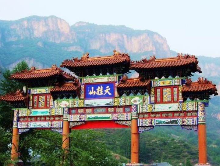這里峰險(xiǎn)、石奇、洞幽、泉多、林木繁茂、云霧繚繞。山上古建原為崇禎皇帝歸隱行宮,后改為青龍觀道院,又稱“北武當(dāng)”。建筑群規(guī)模宏大,富麗堂皇,依山就勢(shì),錯(cuò)落有致。主要人文景 觀有:真武殿、大光明殿、東西 朝房、鐘樓、鼓樓、蒼巖宮、三道靈官閣等三十余處建筑。自然景觀主要有:真武洞、白毛女洞、無(wú)底洞、七泉一井、石乳長(zhǎng)廊、飛來(lái)石門、大小天橋等。天桂山是一處集歷史古建筑和自然風(fēng)光為一體的山岳古剎型風(fēng)景名勝區(qū)。 宮天桂山呈典型的巖溶地貌,融山泉林洞于一體,集雄險(xiǎn)奇于一身,頗具廣西桂林山勢(shì)之特點(diǎn),這里四季如春,故有“北方桂林”之稱。山上主要人文景點(diǎn)是青龍觀道院,始建于明末原本為崇禎皇帝的歸隱行宮。除青龍觀之外,還有白毛女洞、真武洞聚仙堂等人文景觀。一九九七年,為慶祝香港回歸,版權(quán)所有山東聊城聊之旅國(guó)際旅行社有限公司,轉(zhuǎn)載必究!在天桂山一百多米高的峭壁上,鐫刻了一個(gè)巨大的“歸”字,字高97.71米寬49.1米,是世界上最大的漢字。 天桂山原名“三門寨”,因自然風(fēng)光頗具廣西桂林山水神韻才改名。天桂山一帶分布大面積白石灰?guī)r、白云巖、碳酸鹽巖等,這些巖類很容易被水溶蝕,天長(zhǎng)日久就形成了喀斯特地貌景觀,以山奇、洞異、水清為特色。抬眼望去,橫立在群山中的天桂山雄渾、壯觀,千余米的主峰直插云端。