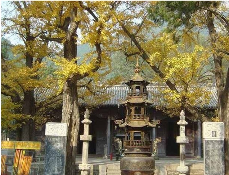 即千年銀杏樹。在禪林古寺周圍長著的十三株(一雄十二雌)蔽天遮日的古銀杏樹,植于秦代,樹齡2000年以上。至今仍枝繁葉茂,果實(shí)累累。雄樹最為高大,被稱為“龍種”,而其中一株雌樹滋生三代細(xì)樹,稱為“四世同堂”。樹心已腐朽,又在洞腹中生出一株粗大的銀杏,母子合一共擎蒼天,給人以神秘莫測之感。寺廟碑文曾記載:“先有禪林后有邊(邊,指長城),銀杏還在禪林前”。足以證明這十三株銀杏歷盡蒼桑已兩千多年。清代遵化州進(jìn)士史樸到禪林寺巡視時(shí)亦留下贊頌詩句:“五峰高峙瑞去深,秦寺云昌歷宋金。代出名僧存梵塔,名殊常寺號(hào)禪林。巖稱虎嘯馴何跡,石出雞鳴叩有音。古柏高枝銀杏實(shí),幾千年物到而今。”