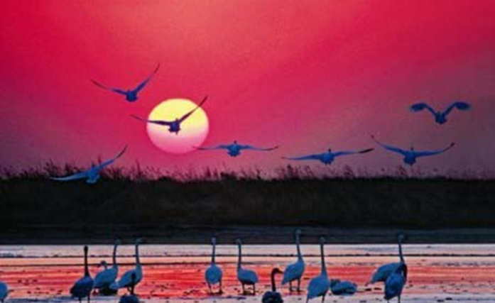 古詩曰:黃河之水天上來,奔流到海不復(fù)回。而詩中所指黃河入??诰褪谴颂幜耍且?855年黃河改道而成,地處渤海與萊州彎的交匯處,黃河千年的流淌與沉淀,在它的入??诔删土酥袊顝V闊、最年輕的濕地生態(tài)系統(tǒng),這就是黃河口濕地生態(tài)園,屬于高度特異性旅游資源,有很強的觀賞性。因其獨特的濕地生態(tài)環(huán)境,得天獨厚的自然條件,園內(nèi)的生物資源非常豐富,有刺槐林1.2萬公頃,各種生物1917種,其中水生動物641種,屬于國家一級保護(hù)的有達(dá)氏鱘、白鱘兩種;這里也是鳥類的棲息地,鳥類主要有丹頂鶴、白頭鶴、白鸛、中華秋沙鴨、金雕、白尾海雕等多種一級重點保護(hù)鳥類,國家二級保護(hù)的鳥類與30多種,而且隨著我們進(jìn)一步對濕地的恢復(fù)和保護(hù),將會有越來越多的鳥類停留在這里,成為鳥類生活的樂園。是集生態(tài)原始旅游、濕地科學(xué)考察、鳥類研究、愛國主義教育于一體的旅游地。