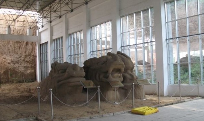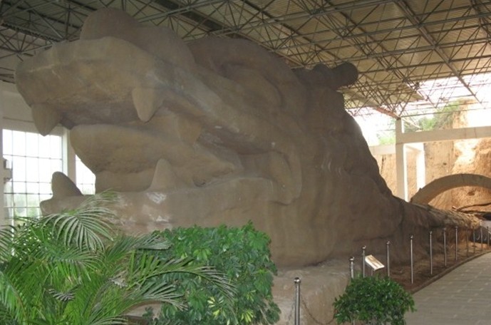 專(zhuān)門(mén)用來(lái)保護(hù)古石龍的龍文化保護(hù)館于今年夏天剛剛建成,該館長(zhǎng)50米,寬40米,高8米,依臥龍崗而建,剛好可以把發(fā)掘出來(lái)的這十條古石龍保護(hù)起來(lái)。
