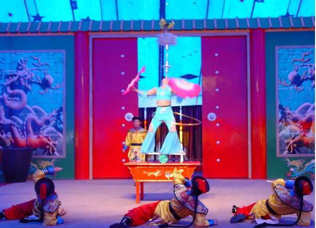 以展示集現(xiàn)代聲、光、電及各種高科技技術(shù)于一體的大型綜藝性雜技晚會。