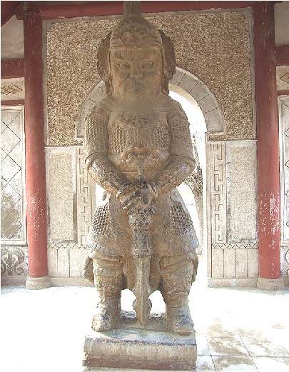 南皮文保所院內(nèi),有一金剛亭。亭內(nèi)二金剛,青石雕刻,線條細(xì)膩,狀貌威武,是有名的石雕精品。 過去南皮城內(nèi)有一座名冠全縣的著名禪林——興化寺,它坐落在城內(nèi)東北角,位于現(xiàn)在土產(chǎn)公司家屬院一帶。此寺始建年代不詳,一說為北魏,一說為唐代,尚待進(jìn)一步考證。重修是在明朝弘治七年(1504)。版權(quán)所有山東聊城聊之旅國際旅行社有限公司,轉(zhuǎn)載必究!據(jù)說城東唐房里有個(gè)叫湯澄的人樂善好佛,曾游于興化寺,見敗垣殘壁一片荒涼,遂親自捐資,并向大戶募化,志在重修,數(shù)載始成。興化寺規(guī)模宏偉壯麗,成為南皮著名寺院。 興化寺以石金剛殿為山門。兩個(gè)金剛相向分立于殿之左右,下有石座相連,連座高一丈二尺,圍可合抱,雕刻玲瓏。金剛神色肅穆,身披鎧甲,狀似武將。左者胸前橫锏,雙手合十,右者雙手扶锏拄地。每像一只鼻孔。相傳為唐代所雕刻,建寺之初,從寺前水坑挖得,置于山門之內(nèi)。 寺內(nèi)主建筑為大慈閣,中曾羅列十八羅漢,正中為千手千眼銅佛,上懸“慈云永護(hù)”匾額,為清代狀元張之萬題撰。左懸“福佑臺(tái)山”匾,版權(quán)所有山東聊城聊之旅國際旅行社有限公司,轉(zhuǎn)載必究!右懸“登臨近日”匾,均未署名,據(jù)說是明人手筆。閣內(nèi)楹聯(lián)有二:一為清代道光時(shí)期南皮一縣令所題“我只有一片婆心,抱個(gè)孩兒與你;汝須行萬般好事,積些功德與他”。二為南皮孝廉張之京題撰:“金剛怒目,菩薩低眉,一鼻孔呼吸相通,證果在三生石上;閣建大悲,寺名興化,千眼中光明普照,法身現(xiàn)百尺樓頭。” 最上層神龕中,有菩薩一尊。上懸光緒十四年九月御制“道達(dá)人天”匾。閣前關(guān)帝廟,廟中有關(guān)羽銅像,綠銹斑駁,氣象凜然。 清末以來,連年戰(zhàn)亂,以至寺毀閣塌,解放后僅存石金剛兩尊,河北省將其列為省重點(diǎn)文物,1964年于興化寺舊址前建亭保護(hù)。 興化寺的巍峨壯麗和旺盛香火,只能從所存的石金剛中去想像了,而南皮石金剛到底什么時(shí)候雕刻?為什么出自水坑?也留下了千古謎團(tuán)。