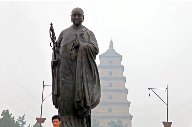 新建的占地20多畝的以玄奘為主題的大雁塔南廣場(chǎng)位于大慈恩寺門前,廣場(chǎng)中央臺(tái)座上,坐落著一尊高大的唐僧取經(jīng)銅像,花壇錦簇,華燈成行,馬路寬闊,設(shè)施齊備。大慈恩寺大雁塔有著一千多年的光輝歷史,曾有過(guò)輝煌的一頁(yè),據(jù)史書記載:唐貞觀二十二年(648年),大慈恩寺建成后,皇太子李治恭請(qǐng)玄奘任該寺上座,寺中專為玄奘辟有翻經(jīng)院,供其翻譯佛經(jīng)。為了協(xié)助玄奘譯經(jīng),還特地選擇了50名高僧作為玄奘的助理。玄奘由原來(lái)居住的弘福寺移居大慈恩寺時(shí),舉行了隆重的儀式。玄奘與50名助理乘車,京城僧眾列隊(duì)隨后,文武百官侍衛(wèi)陪同,太宗皇帝與太子李治及后宮嬪妃在安福樓上手持香爐目送,長(zhǎng)安各界人士夾道歡呼。