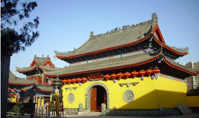 寺院坐北朝南,三層院落,占地三十余畝。前為山門,門楣上懸掛“大法禪林”匾額。山門內(nèi)塑有哼哈二將,氣象威猛,形體高大,翹首望之,始見其面。東西兩側(cè)建有鐘樓、鼓樓。中為天王殿,內(nèi)塑四大天王巨像,版權(quán)所有山東聊城聊之旅國(guó)際旅行社有限公司,轉(zhuǎn)載必究!后為大殿供奉釋迦牟尼、菩薩諸佛。配殿供奉千手千眼佛及魔家四將。寺內(nèi)整個(gè)建筑為棕門灰墻碧瓦,三層大殿高聳巍峨,畫棟雕梁,窮極壯麗。在清代古寺興盛時(shí)期,僧侶云集,有僧百余人,是沈陽重要禪林之一??上Ъ壮饺斩碇畱?zhàn),毀于兵亂之中,古跡蕩然?,F(xiàn)寺院內(nèi)僅存殿堂兩座,為工廠所用。