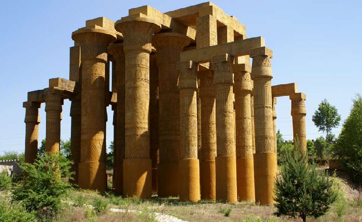 卡納克神廟是埃及的雄偉高大的建筑群。公元前1870年,埃及法老下令修建了一片廟宇群,它由20多座神廟組成。它是法老敬獻(xiàn)給太陽(yáng)神和月亮神的最高禮物,經(jīng)過(guò)三千多年的風(fēng)雨侵蝕,現(xiàn)已殘缺不全。這些石柱是遺址中具有代表性一部分,石柱上的圖紋和象形文字,反映了當(dāng)時(shí)古埃及人勞動(dòng)、生活、敬神等情景。