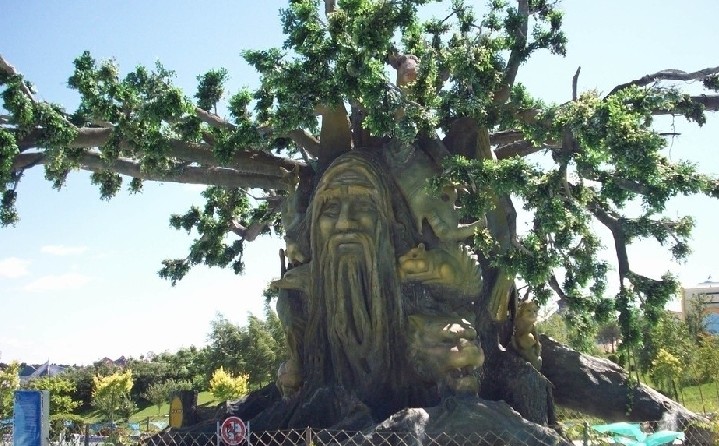 神秘古樹象征著人與自然和諧共處的神秘古樹,其實蘊藏著一段感人的傳說…… 久遠前,這里曾是一片山谷與密林,所有的動物都和諧地生活著。但這里每隔一定的年頭就會發(fā)生自然災難,山上的石頭會迸裂開來,洪水噴涌而過,幾乎吞走所有動物。年長的動物為了躲避災難保護子孫,尋找到一棵幾千年依舊挺拔茂盛、不畏災難的古樹。當災難爆發(fā)時,動物們都環(huán)抱著古樹,期望依靠古樹的力量抵御洪水的沖擊。年長的動物們卻用自己的血肉之軀緊緊的包圍著古樹與子孫,寧可粉身碎骨也抵抗著迸裂的山石。山洪愈加洶涌,為了組成這個嚴實的“保護墻”,無數(shù)的動物長輩獻出了生命,更有無數(shù)的年長動物補充上去。