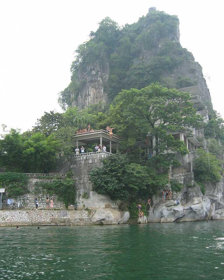 伏波山位于漓江之濱,孤峰雄峙,半枕陸地,半插江潭,遏阻洄瀾,故以為名。