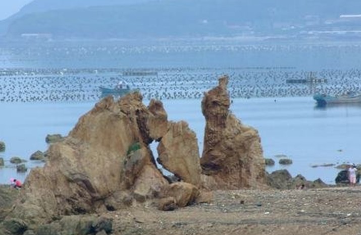 第二天,在大將軍倒下的地方,海水像開了鍋,呼嘯翻騰,忽然立起一塊巨石,人們一看很像大將軍的樣子。他的女兒見了,飛快地撲過去,還沒靠近就僵住了,也化成一塊巨石。人們稱那塊像大將軍的巨石為“將軍石”。父女倆屹立在廣鹿島的岸邊,日夜守衛(wèi)著寶島。