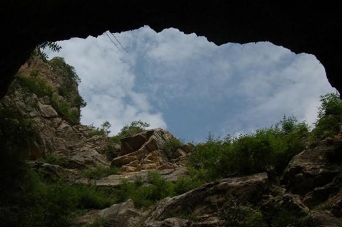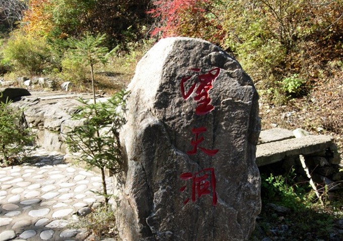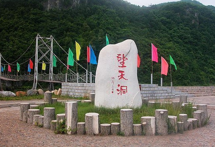 望天洞位于雅河鄉(xiāng)彎彎川村東70余米高的山頂上。該洞發(fā)育于20萬年前,洞總長 7000余米,洞內最大的廳6000余平方米,可容納萬人。全洞4大景區(qū)100余景點。洞內的迷宮更為奇特,被稱為“北國第一洞,迷宮世無雙”。此洞兩個洞口并列,中間一道兩抱多粗的石梁。右側洞口有50平方米,洞口石壁上一只展翅昂首的大鳥,面向東方,形象逼真,名曰“鯤鵬朝陽”。左側洞口有35平方米。兩個洞口酷似一副巨大的眼鏡放在山巔。沿左側洞口石壁扶鐵欄踏石階經(jīng)“通天橋”,下行30余米,便是該洞的第一大廳--“聚仙廳”,寬闊高大,可納千人?;厥籽鐾?,兩道光柱直射廳中,使人有懷抱紅日、目接青天之感。若在春冬季節(jié)或雨、雪之后,廳內云霧繚繞,從洞口向上升騰,云霧與洞口綠樹交相輝映,更是妙不可言。