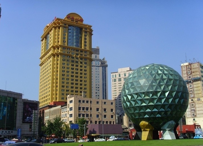 特征 友好廣場是圓形封閉性環(huán)島廣場。廣場中央有巨大的水晶球,建于1996年,是根據(jù)幣長薄熙來的構(gòu)思設(shè)計的。它是祥和、吉祥的象征。