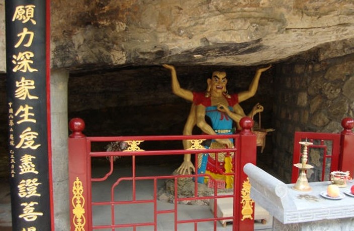 登上裝有石欄板的露臺(tái)仰觀勝水寺上院,一塊圓形巨石上現(xiàn)出南閣區(qū)檐。由西山門門洞拾級(jí)而上,眼前出現(xiàn)的是一個(gè)古樸的庭院。庭院被巨大的隱仙洞所半吞,殿內(nèi)供奉釋伽牟尼、文殊、普賢、觀音、地藏王各一尊,兩側(cè)為十八羅漢。正殿檐下原懸有歷代名家手書“一洞天”、“慈云永護(hù)”、“圣德參天”等匾額。版權(quán)所有山東聊城聊之旅國際旅行社有限公司,轉(zhuǎn)載必究!據(jù)碑文記載,勝水寺以水勝得名,這“勝水”當(dāng)出自正殿右側(cè)古井,可惜60年代初進(jìn)行國防施工時(shí)水線被截。西禪房附近有天然石鏡,光可鑒人。勝水寺上院左前方高達(dá)8米的南閣,紅墻黃瓦,格外醒目。登閣憑欄眺望,天海茫茫,層巒疊嶂。夏日山雨欲來或雨過初晴之時(shí),在此可見腳下云霧翻涌、飄飄欲仙之景,蔚為壯觀。