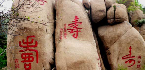 壽字碑林是長壽山景區(qū)鐘最引人入勝的景觀之一,版權(quán)所有山東聊城聊之旅國際旅行社有限公司,轉(zhuǎn)載必究!它是利用中國傳統(tǒng)的書法藝術(shù)結(jié)合長壽山的奇峰異石而建造的人文景觀。在大小不一,方圓各異的怪石上鐫刻著不同朝代,不同字體,陰陽文不同形式的名人“壽”跡,這些因石而制的摩崖雕字,或隱或現(xiàn),或藏或露,字形各異,神彩飛動,那異曲同工的百家書風,構(gòu)成了中國歷代書法名家之“壽”字大成,表現(xiàn)了中華民族書法文庫的獨特神韻,成為東方雕刻、書法相融合的藝術(shù)風景。