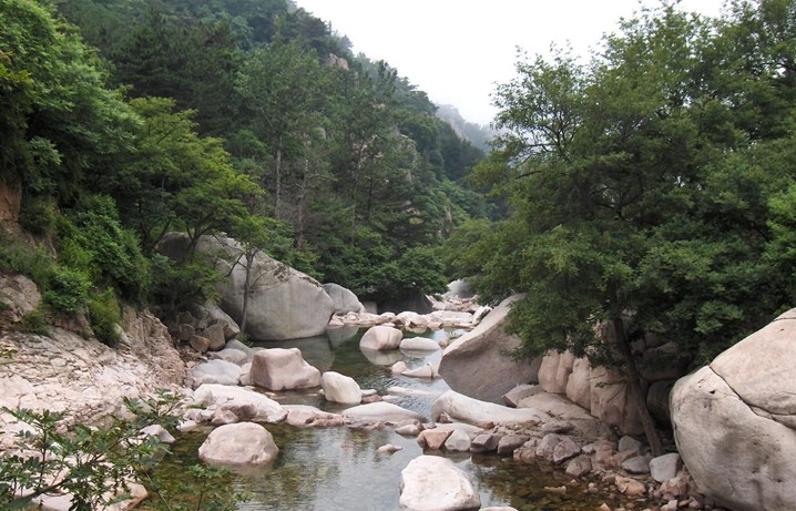 北九水為白沙河中游的峽谷地帶。白沙河發(fā)源于巨峰北麓海拔800多米處的天乙泉,始名涼清河,中為九水。