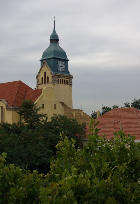 教堂由德國膠澳總督府出資,于1908年4月19日奠基,1910年10月23日落成。教堂頂部有高39米的報時鐘樓,俗稱“鐘表樓”。它是一個典型的德國古堡式建筑,占地1000平方米,由鐘樓和禮堂兩部分組成。鐘樓高39.10米,登樓可觀賞島城的海天秀色。鐘樓上的巨型鐘表,給原本肅穆的教堂又增添了幾分神秘和莊重。