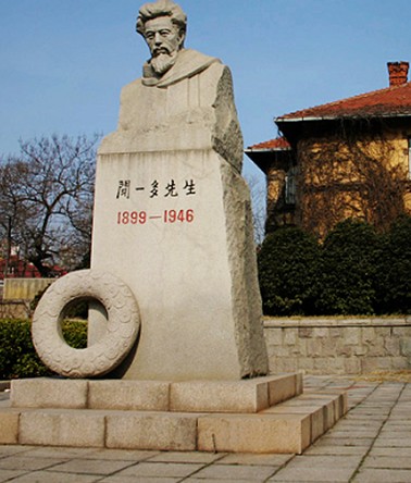 解放后,聞一多先生的故居劃在原青島大學(xué)(現(xiàn)青島海洋大學(xué))校園內(nèi),并命名為“一多樓”。1978年,海洋大學(xué)將“一多樓”辟為“聞一多故居展室”,展室陳列有聞一多先生的著作及其它一些紀(jì)念物。展室匾額“一多樓”,由中國書法協(xié)會主席舒同題寫。小樓前建有一花壇,花壇正中豎立有聞一多先生半身大理石塑像,座上刻有聞一多先生的學(xué)生、著名詩人臧克家撰寫的碑文。